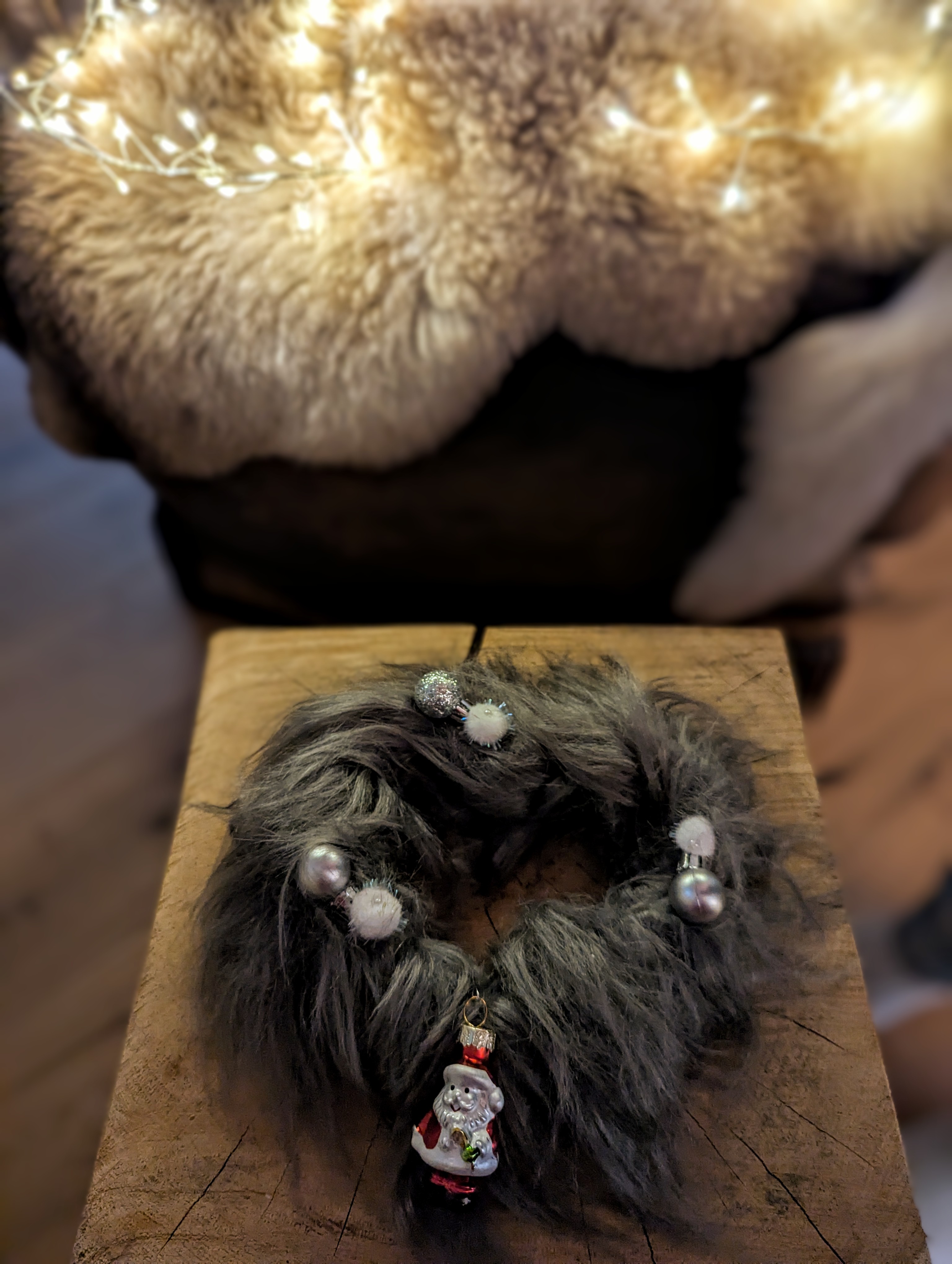 ✨ Handgemachter Fell-Kranz – Winterzauber mit Mini-Weihnachtsmann! ✨ ❄️ Kuschelig & winterlich: Der Kranz aus flauschigem Kunstfell bringt sofort eine warme, gemütliche Stimmung in dein Zuhause. Perfekt für alle, die eine weiche, winterliche Deko lieben, die zugleich modern und einladend wirkt. 🎅 Mini-Weihnachtsmann in Rot & Weiß: Der kleine Weihnachtsmann ist das liebevolle Highlight dieses Kranzes. Mit seinen klassischen Farben und dem fröhlichen Ausdruck bringt er sofort festlichen Charme und ein Lächeln mit. ⚪✨ Silberfarbene Mini-Christbaumkugeln: Die kleinen Kugeln in elegantem Silber sorgen für funkelnde Akzente. Sie harmonieren wunderbar mit dem weichen Fell und setzen einen edlen Glanzpunkt, der in jedem Licht strahlt. 🏠 Perfekt für jede Ecke: Ob an der Wand, Tür, Fenster oder als Teil einer Tischdekoration – dieser Fell-Kranz fügt sich überall ein und bringt sanfte Weihnachtsstimmung in jeden Raum. 🎁 Handgemachte Besonderheit: Mit Liebe gestaltet, detailreich dekoriert und ein echtes Unikat. Ideal zum Verschenken – oder zum Selbstbehalten, wenn du deine Weihnachtsdeko dieses Jahr ganz besonders machen möchtest. 🌟 Ein märchenhaft gemütlicher Blickfang – klein, süß und voller Weihnachtsfreude!