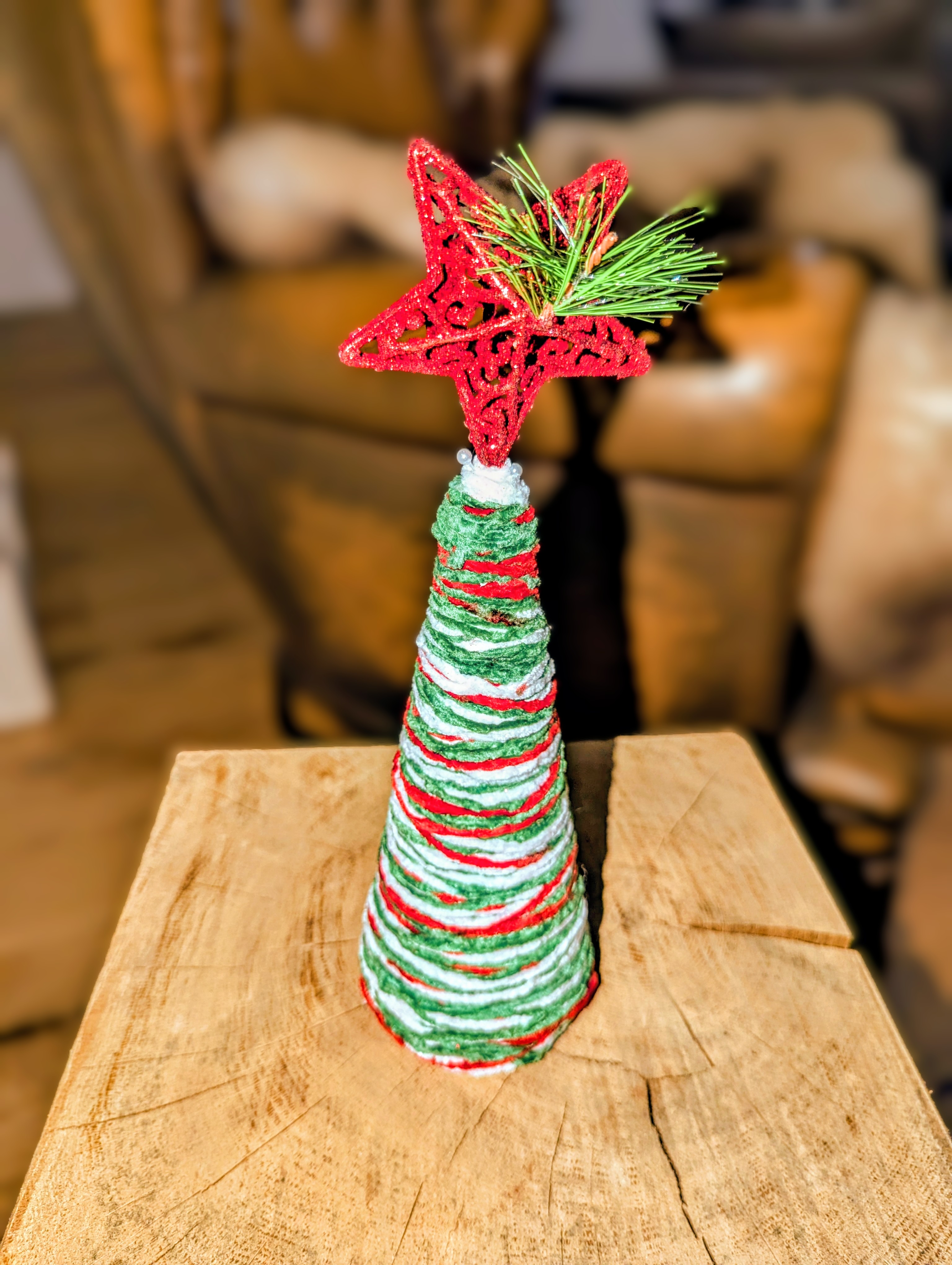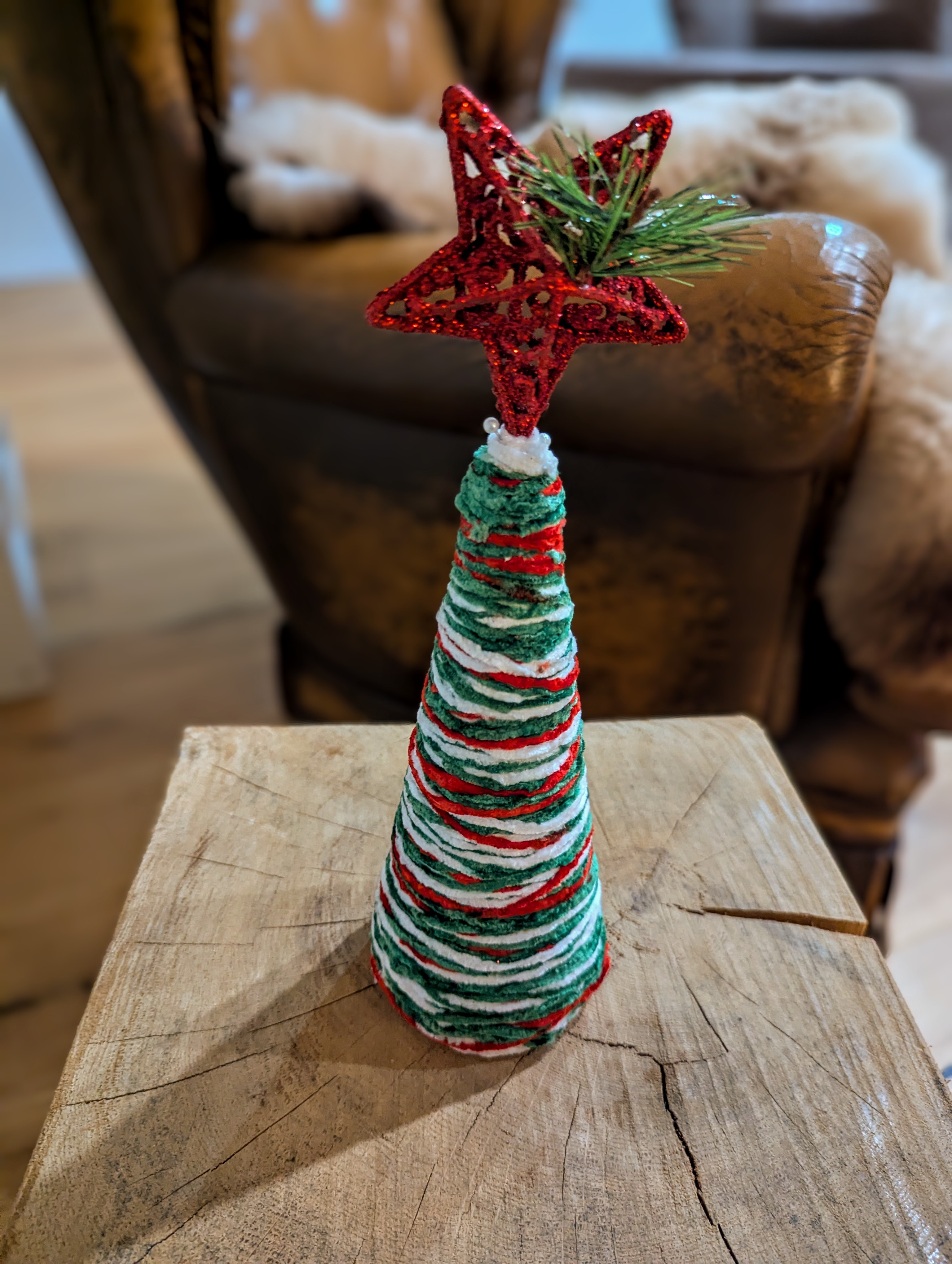Ideal für kleine Dekoecken, Adventsarrangements oder als Ergänzung zu deinem Weihnachtsbaum – dieser handgemachte Kegel bringt Farbe, Freude und einen Hauch Magie in dein Zuhause.
